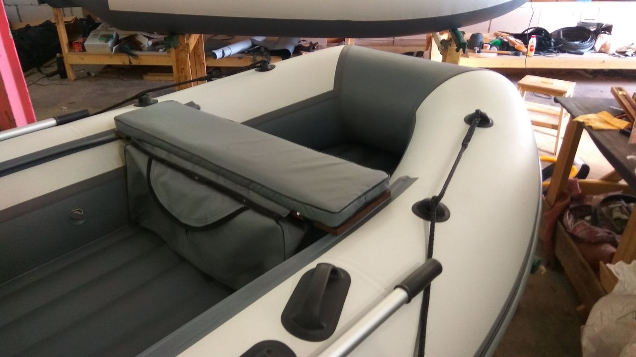 Крепится стяжками за жесткое сиденье. Предназначено для дополнительного комфорта при продолжительном нахождении в лодке. В сумке можно расположить вещи. Сумка съемная.